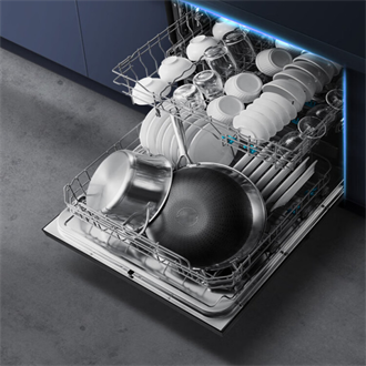 AI水槽洗碗机的核心亮点是**AI智能清洁与全场景集成能力**。它采用AI油污识别技术,可自动检测餐具油污程度,根据油污轻重自动调节洗涤参数、水温与洗涤时间,彻底去除餐具上的油污、细菌,洗涤完成后自动烘干、消毒,消毒等级达到二星级,可有效杀灭有害细菌,保障饮食安全。集成化设计将水槽、洗碗机、垃圾处理器、净水设备融为一体,在有限的空间内实现全场景清洁功能,无需单独摆放多种设备,大幅节省厨房台面与地面空间,适配小户型厨房。