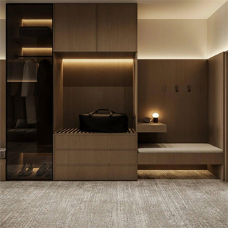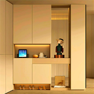 功能与体验方面,这款玄关柜具备智能鞋靴护理功能,内置鞋靴烘干、杀菌模块,可自动烘干鞋子、杀灭鞋子上的细菌、螨虫,去除鞋味,让鞋子保持干燥、清新,尤其适合潮湿季节。具备钥匙、包包遗忘提醒功能,通过传感器监测,若用户忘记带钥匙、包包,自动发出声光提醒,避免遗漏。支持自定义迎宾模式,用户可设置不同家庭成员的欢迎语、灯光效果,打造个性化迎宾体验。同时,它具备临时存放功能,可设置临时密码,方便访客存放物品,提升入户便捷性。