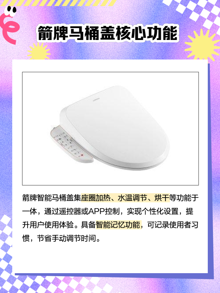 其核心功能精准匹配长辈需求,即热式供水技术可实现水温无级调节,3档座圈加热功能让长辈冬季如厕告别冰冷;全自动冲洗模式支持前后喷淋、水压调节,搭配暖风烘干,无需手动操作更便捷。内置漏电保护、防干烧、水温过热保护三重安全防护,从源头规避用电风险。安装简单适配多数普通马桶,控制面板大字体显示+清晰图标,长辈轻松上手。399元的亲民定价,配合箭牌卫浴的品牌品控,让普通家庭无需高额投入即可完成如厕场景的适老化升级,真正实现“温暖守护,安全无忧”。