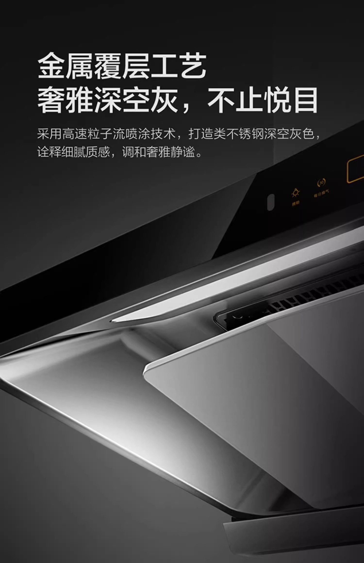 智能清洁与交互方面,支持高温蒸汽自清洁功能,通过110℃高温蒸汽溶解油烟机内部的油污,清洁完成后自动烘干,无需手动拆卸清洗,既省时又省力。搭载智能感应技术,支持挥手控制,用户只需挥手即可开启、关闭油烟机和调节风量,避免手上油污沾染面板。支持手机APP远程控制,用户可通过APP查看油烟机工作状态、剩余清洁次数,也可远程启动自清洁功能。
