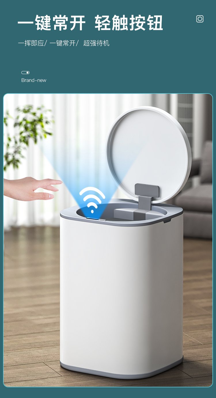 这款定价399元的智能垃圾桶,容量18L,适合厨房日常使用。核心优势在于其红外感应技术,手或物体靠近垃圾桶30cm范围内,桶盖自动开启,离开后3秒自动闭合,全程无需接触桶盖,避免细菌交叉感染;采用密封式桶身设计,搭配可降解垃圾袋固定圈,能有效隔绝垃圾异味,保持厨房空气清新。