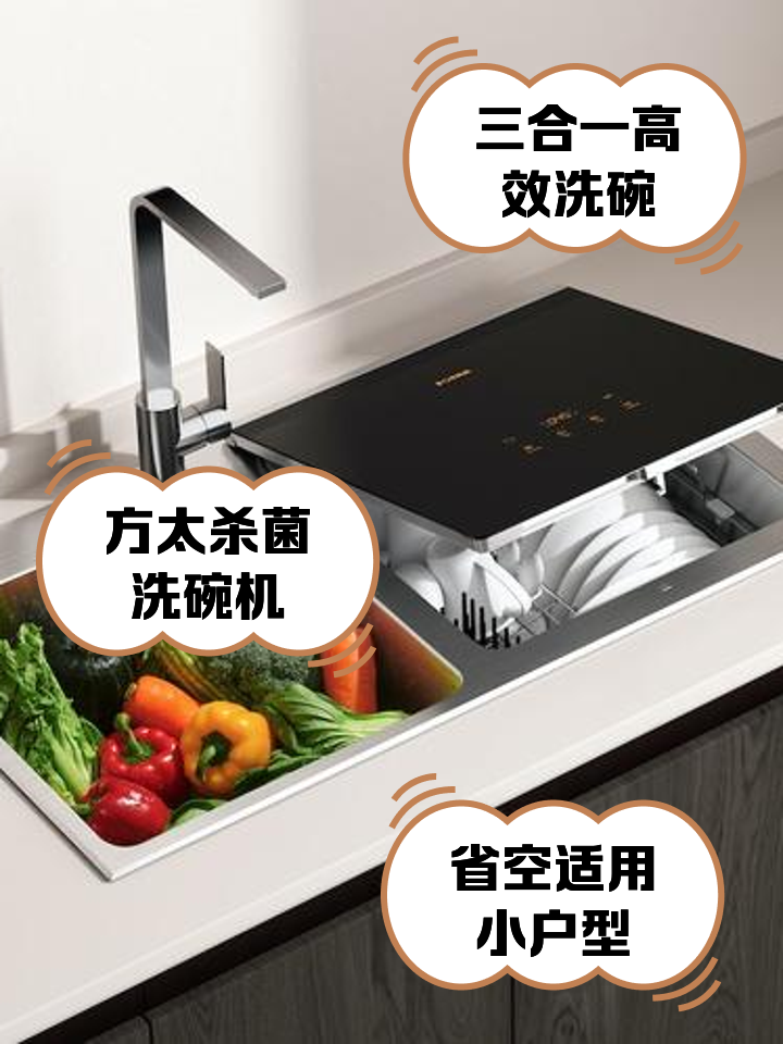 方太X5S水槽洗碗机创新性地将洗碗机与水槽结合,节省了厨房空间的同时提升了使用便利性。其超声波清洗技术能够有效去除果蔬表面的农药残留,洗碗功能则采用高温喷淋和热风烘干,确保餐具清洁卫生。