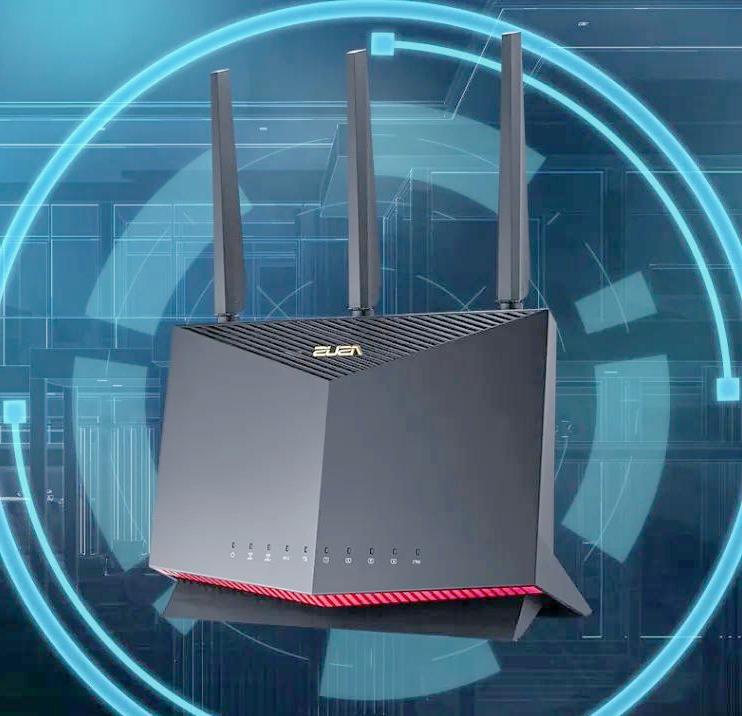 华硕RT-AX86U Pro路由器作为智能家居网络的核心设备,搭载博通四核1.8GHz处理器和256MB内存,提供强大的数据处理能力。该路由器支持Wi-Fi 6标准,最高理论速率达到5700Mbps,采用4x4 MU-MIMO技术确保多设备同时连接时的稳定传输。其独特的定向天线设计通过调整天线角度,能够针对特定区域增强信号覆盖。