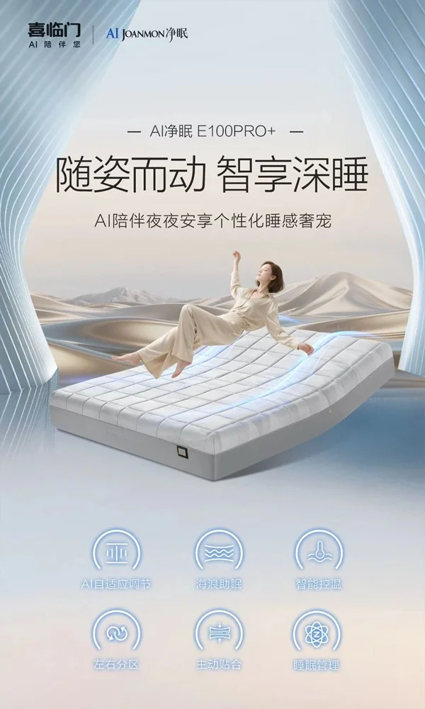 喜临门AI Pro智能床垫内置超过2000个压力传感器,能够实时监测睡姿变化和压力分布。其智能调节系统通过分区独立控制的空气弹簧,自动调整不同区域的支撑硬度。AI学习算法会分析用户的睡眠数据,在3-7天内建立个性化支撑曲线。
