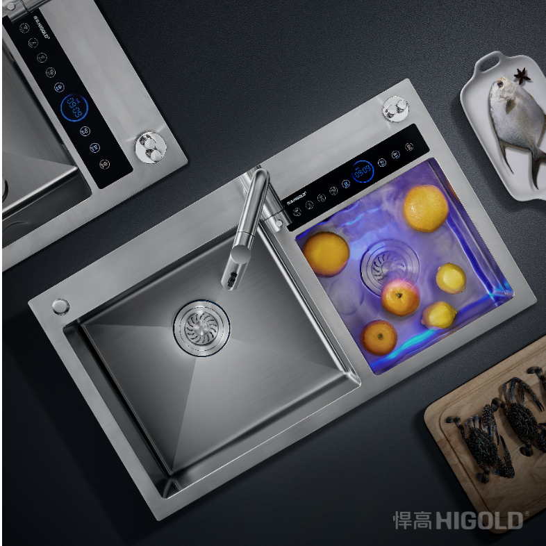 核心功能上,集成水槽、果蔬清洗、餐具消毒、净水等多种功能。果蔬清洗功能采用超声波技术,可有效去除果蔬表面的农药残留、灰尘和虫卵,保障饮食安全;餐具消毒功能采用高温蒸汽消毒,除菌率高达99.99%,消毒后的餐具可直接存放。净水功能搭载RO反渗透膜过滤系统,可直接产出直饮水,满足烹饪、饮用需求。