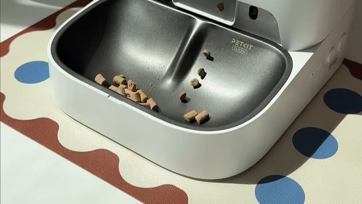 冷藏保鲜系统是其核心亮点,设备内置小型冷藏库,可一次性储存7天的宠物湿粮,通过密封设计与低温环境抑制细菌滋生,确保每一餐都新鲜可口。搭配自动传送带装置,能按时将定量湿粮输送至食盆,无需人工频繁添加。1080P夜视AI摄像头不仅可抓拍宠物干饭瞬间,更能精准监测健康状态,识别具体进食宠物、进食量与剩余量,若48小时内食物未吃完,会自动回收处理,避免变质引发肠胃问题。