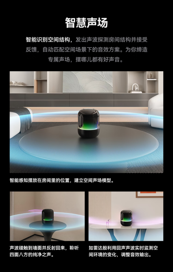 核心亮点在于音质表现与鸿蒙智慧播控能力。搭载波导声扩散技术,高音清澈通透、中音饱满自然、低音下潜有力,能精准还原原声质感,打造沉浸式声场。支持PLC宽窄合一技术,通过电力线实现无损数字化音频传输,无需额外布线,避免信号干扰,覆盖全屋无死角。作为全屋音乐中枢,可与鸿蒙智家其他设备联动,实现音随人动,用户从客厅走到卧室,音乐自动无缝切换至对应区域音箱。