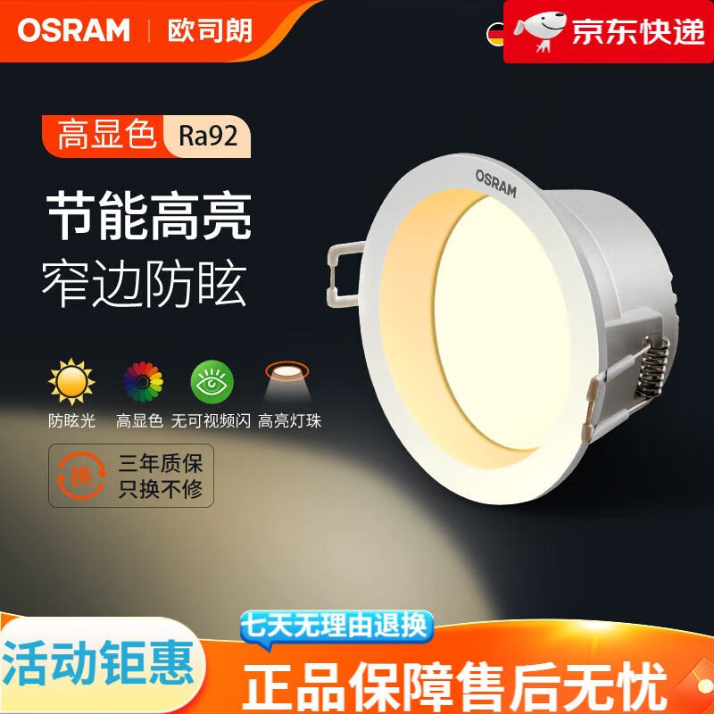 核心功能在于精准调光调色,支持从暖光(2700K)到冷光(6500K)的无缝切换,亮度可从5%调节至100%,通过欧司朗Smart+ APP可单独控制每盏筒灯的参数,也可分组管理,灵活组合出不同光影效果。例如,客厅观影时,调暗周边筒灯,保留电视背景墙附近的柔和灯光;用餐时,调亮餐桌上方筒灯,营造温馨用餐氛围。