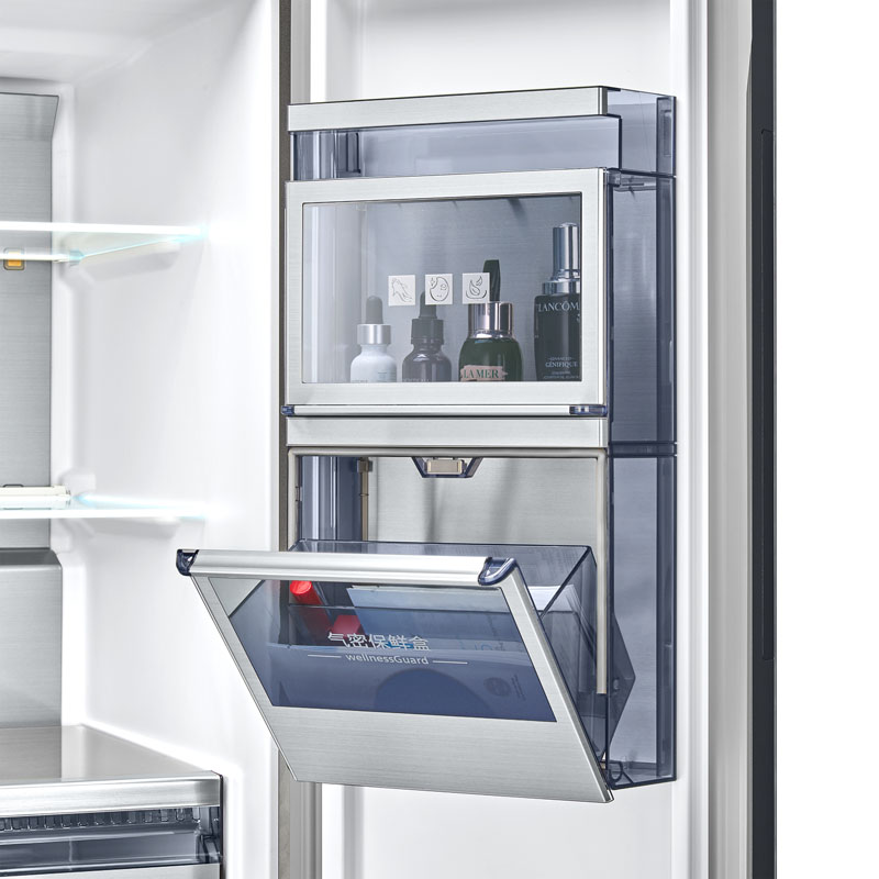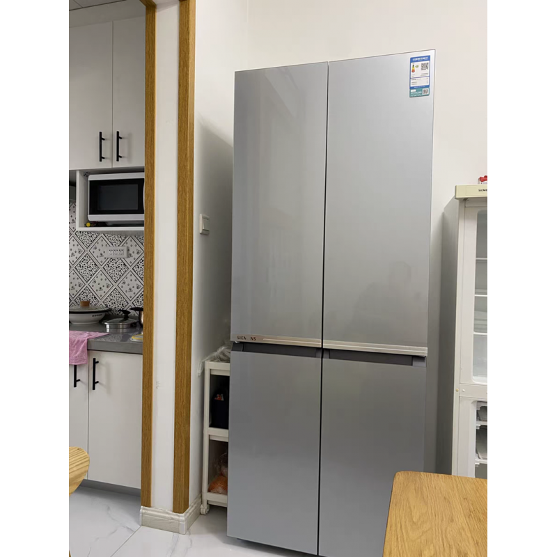 这款冰箱采用多门设计,分区规划科学合理,总容量达481升,配备独立果蔬保鲜舱、零度保鲜区、冷冻分区及变温抽屉,能精准适配不同食材的存储需求,避免串味与营养流失。机身采用金属拉丝面板,质感厚重且防刮耐磨,搭配沉稳银色外观,可轻松融入现代简约、轻奢等多种家装风格,嵌入式安装设计能与橱柜无缝衔接,提升厨房整体格调。