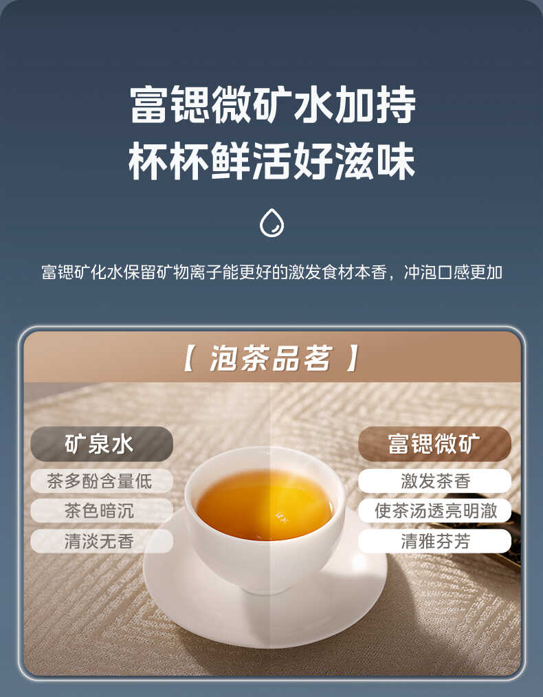 净化性能堪称旗舰级,搭载美国陶氏RO膜与富锶矿化滤芯,可实现6年长效净化,有效过滤重金属、细菌、余氯等杂质,同时矿化出富含锶元素的优质饮用水,口感接近天然矿泉水。支持8℃冷水到沸水一秒切换,定量取水功能可精准控制出水量,适配泡茶、冲奶、直饮等不同需求,童锁设计杜绝儿童误操作风险。通过APP可远程控制开关机、调节水温,实时查看滤芯使用寿命,提醒及时更换。2999元的价格兼顾品质与性价比,透明净水壶还可延伸出浇花、泡茶等妙用,让饮水不仅满足健康需求,更成为一种精致仪式感。