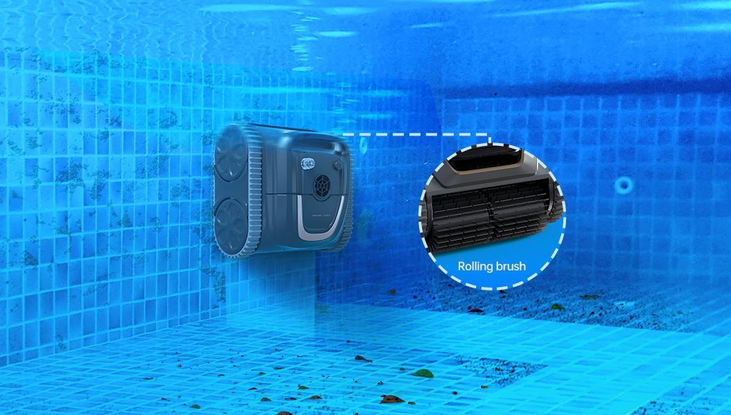 清洁性能出色,搭载SideSweep™贴边清洁技术,融合流体动力学与精密机械控制,使清洁组件能始终紧贴池壁运行,彻底攻克泳池边缘、角落清洁不净的长期难题,实现毫米级贴边清洁。配备强劲吸力电机,吸力可达8000GPH,能轻松吸附泳池内的落叶、灰尘、细小杂物、池底沉积等,清洁效果出色。