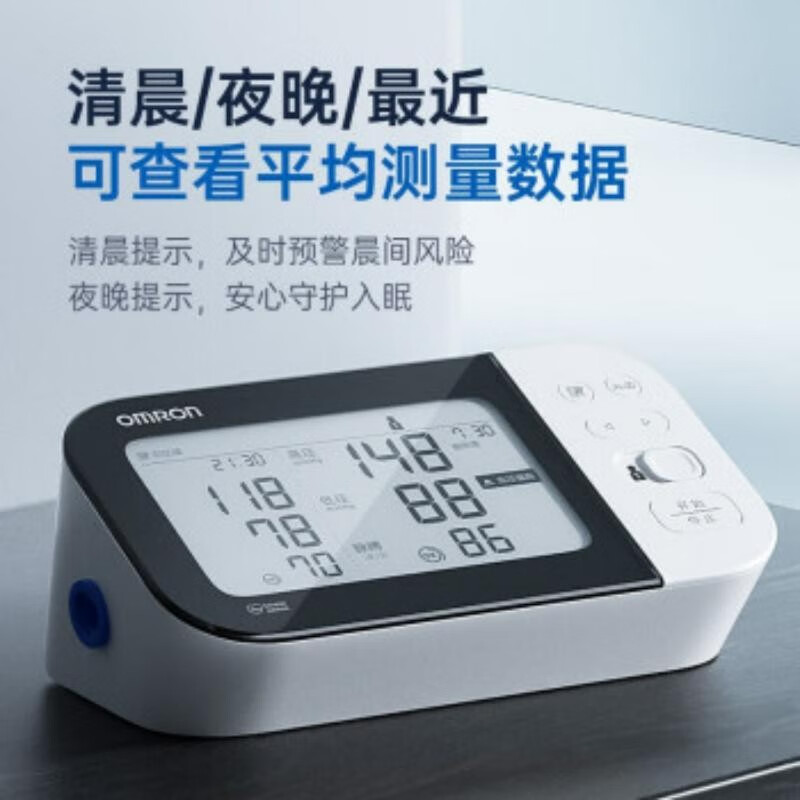 核心亮点在于精准血压监测与数据同步功能,搭载欧姆龙核心传感技术,测量精准度高,能有效捕捉收缩压、舒张压、心率等关键指标,误差小,可准确反映用户的血压状态,为健康管理提供可靠的数据支撑。支持一键测量,按下测量按键后,自动充气、放气,全程自动化,无需用户手动操作,避免操作不当影响测量结果。