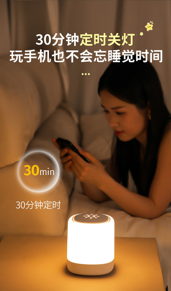 核心亮点在于触控操作与多功能集成,便捷又实用。床头灯采用全触控操作设计,灯体顶部为触控面板,轻触即可开启、关闭灯光,长按可调节亮度,触摸不同区域可切换色温,操作直观简洁,无需繁琐的按钮操作,夜间使用时,无需摸索开关,轻触即可操控,便捷省心。同时,设备集成多种实用功能,底座可拆卸作为手机支架,可支撑手机横向、纵向摆放,方便用户睡前看视频、刷手机,无需额外购置手机支架;侧面隐藏2个USB充电接口和1个电源插孔,可同时为手机、平板、耳机等设备充电,避免床头电线杂乱的问题,满足睡前充电需求。