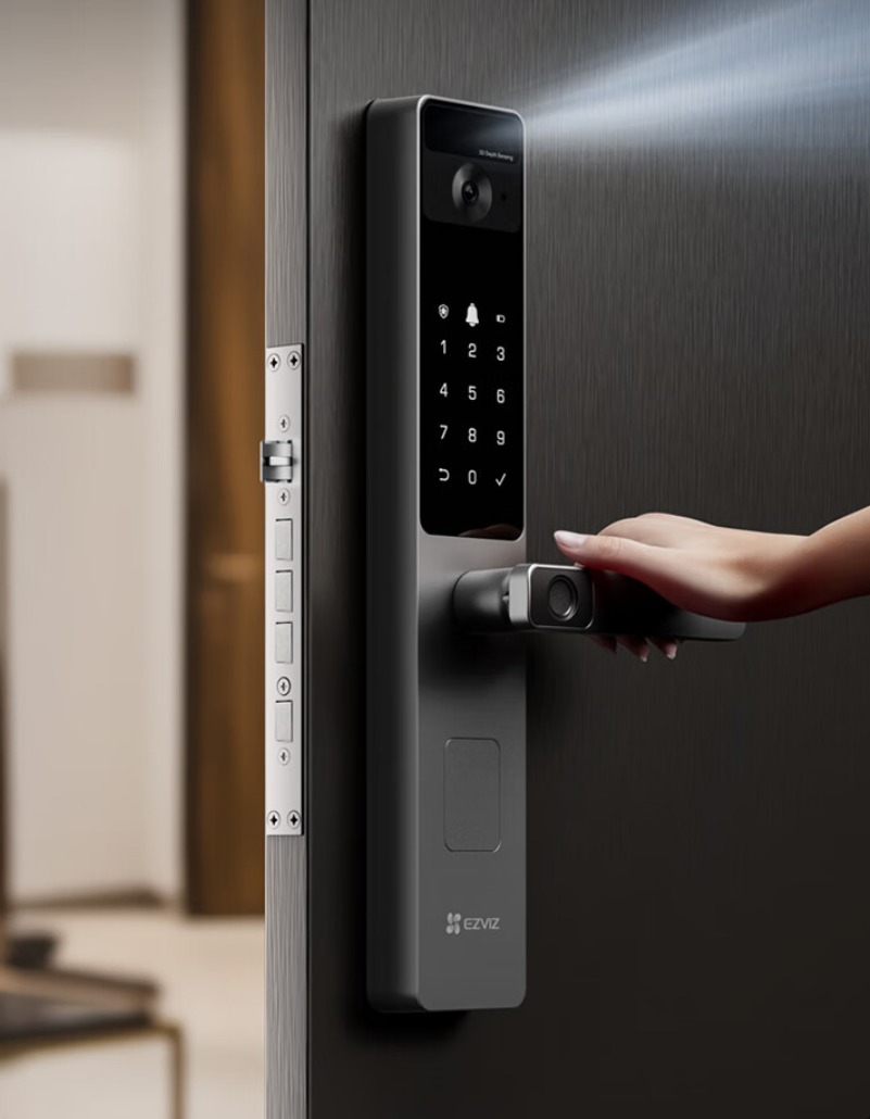 萤石推出的DL20FVS执手款人脸视频锁,以“掌静脉+3D人脸识别+1080P猫眼摄像头”为核心优势,打破传统智能门锁“识别不准、安防薄弱、交互不便”的痛点,成为有老人小孩、注重入户安防、追求便捷解锁的家庭首选入户单品。这款门锁融合多重生物识别技术与高清监控功能,既是智能门锁,也是入户猫眼,兼顾解锁便捷性、安防安全性与交互实用性,适配各类入户门,守护家庭入户安全。