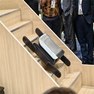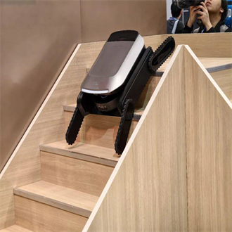 Cyber X的核心亮点是**仿生六足履带爬楼架构**。它采用六足履带式设计,舱体前后腿协同动作攀上楼梯,足关节联动橡胶履带以坦克式连续滚动完成攀爬,可稳定攀爬不同高度、不同材质的楼梯,攀爬过程中不会打滑、倾倒,适配台阶高度范围5-20cm,满足大多数住宅楼梯需求。与轮足式爬楼机器人不同,它的履带式设计可更好地贴合楼梯表面,攀爬稳定性更强,同时可在斜坡上实现悬停、调头与连续清扫。