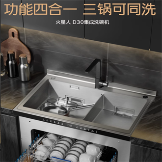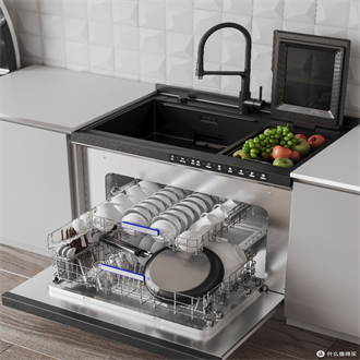 W80的核心亮点是**一体化融合设计与全场景清洁能力**。它采用柜电一体设计,将水槽、洗碗机、消毒柜、垃圾处理器、烘干柜等多种餐厨清洁设备融为一体,在有限的空间内实现全场景清洁功能,大幅节省厨房台面与地面空间,让厨房布局更合理、更整洁。从餐前食材净化、洗切备料到餐后餐具清洁、收纳烘干,W80打造一站式餐厨操作动线,无需在厨房各区域来回走动,大幅提升烹饪与清洁效率。